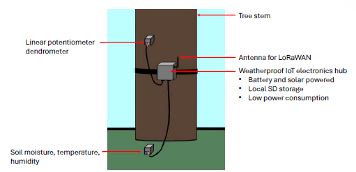 The breakthrough came from rethinking what a dendrometer actually needs to be. Instead of bundling everything into a proprietary black box, this system breaks monitoring into modular components that researchers can mix and match.